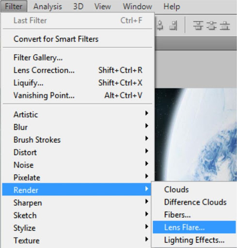 1. Klik Filter > Render > Lens Flare.